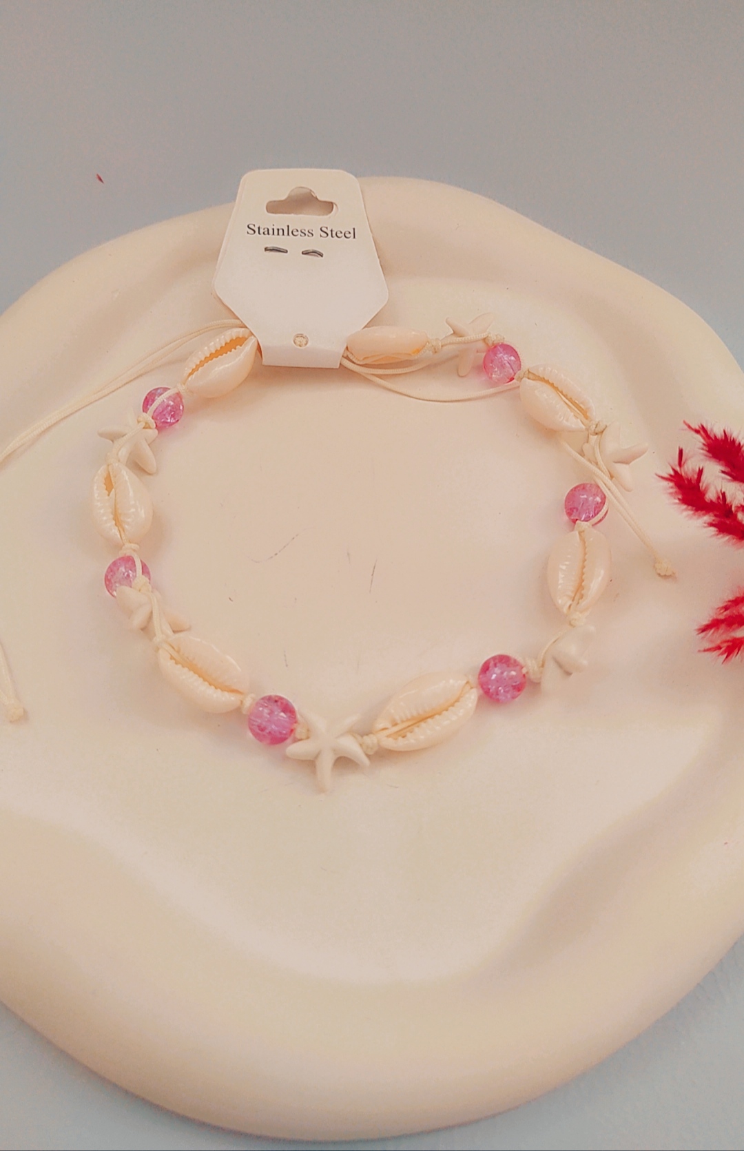ترکیب صدفهای طبیعی با مهرههای رنگی و آویز ستارهای شکل، حالوهوای ساحل و آرامش دریا رو به استایل شما میاره.